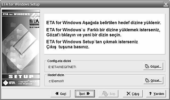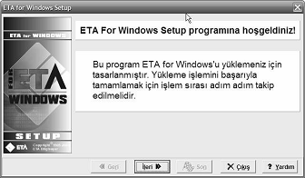 Muhasebe paket program CD’si takılır ve açılan menüde ETA for windows seçeneği seçilerek programın kurulum işlemlerine başlanmış olur.