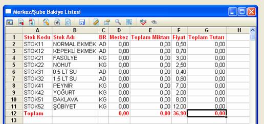 Stok / Raporlar / Ek listeler /Merkez Şube Raporları / Merkez Şube Bakiye Listesi