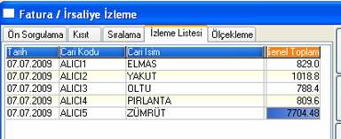 Fatura / Raporlar / Fatura İrsaliye İzleme / Fatura Çıkış / Açık Tipli