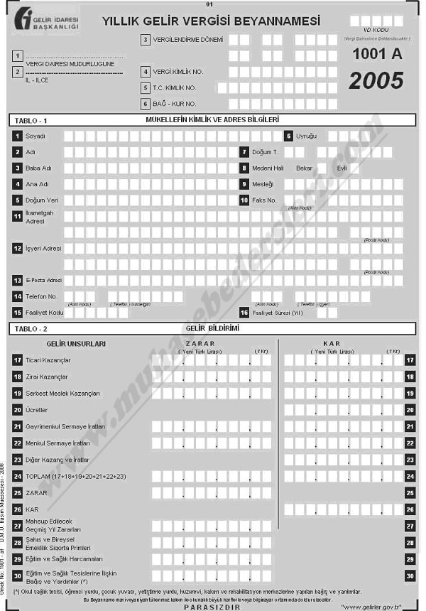 Örnek Yıllık Gelir Vergisi Beyannamesi: