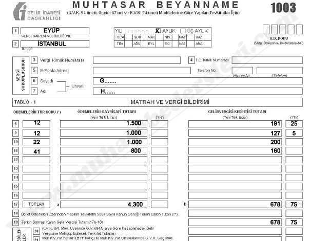 Muhtasar beyanname düzenleme, örnek