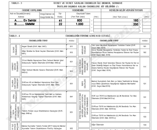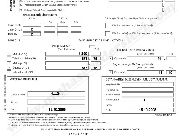 Muhtasar beyanname aşağıdaki gibi doldurulur: